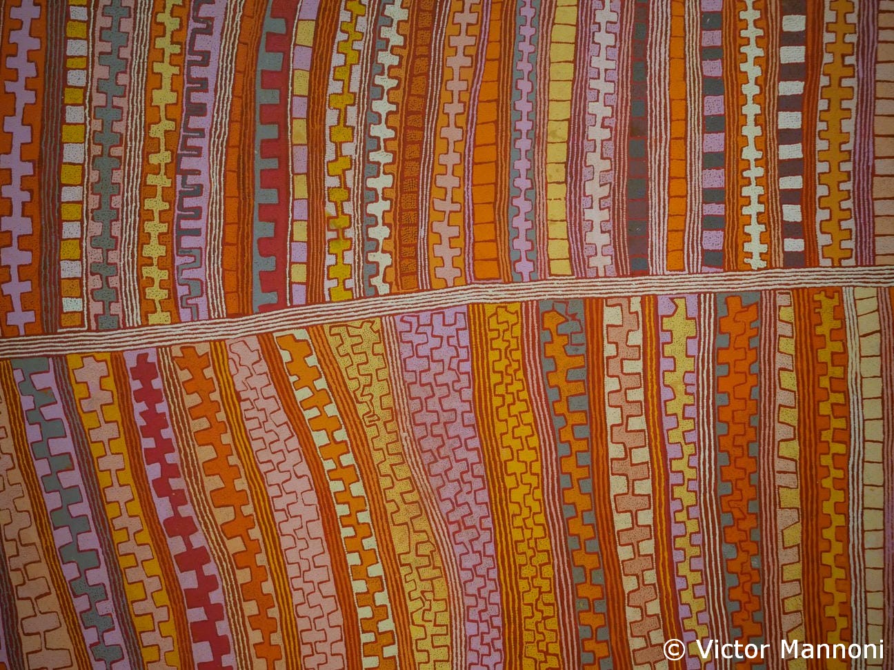 Après cette immersion historique, j’ai traversé le parc de South Bank Parklands en empruntant la Clem Jones Promenade, un espace verdoyant et agréable qui longe le fleuve Brisbane. J’ai poursuivi ma matinée avec une visite rapide au Queensland Museum Kurilpa (C), un musée d’histoire naturelle qui ne m’a pas particulièrement retenu. En revanche, la Queensland Art Gallery (D), toute proche, m’a beaucoup plu : on y trouve de très belles œuvres, notamment des peintures aborigènes et australiennes contemporaines, exposées avec sobriété dans un cadre lumineux.