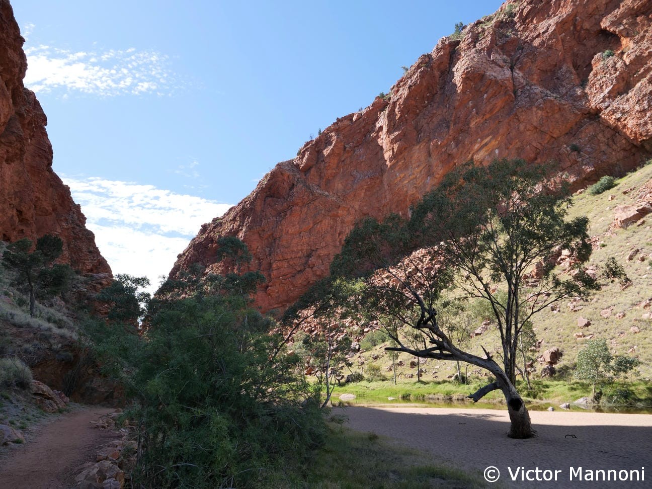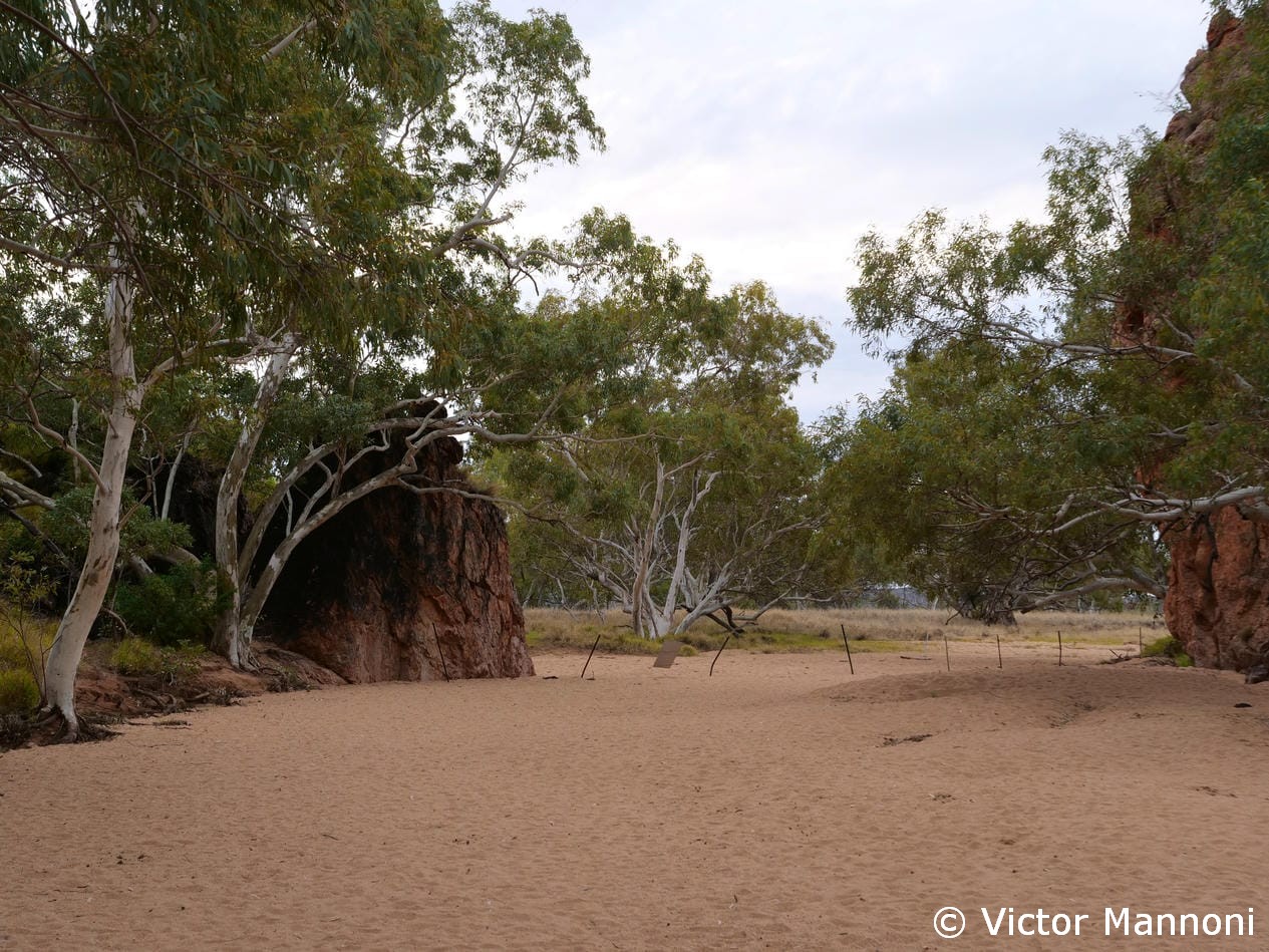 Un agréable sentier relie Emily Gap à Jessie Gap, les deux gorges principales du parc. Le chemin traverse un paysage typique du Centre Rouge, entre collines ocres, eucalyptus et zones rocheuses. Il est possible de faire la marche dans un sens ou de revenir sur ses pas pour profiter pleinement des vues. Pour ma part, je suis parti de Jessie Gap et j’ai fait demi-tour à mi-parcours, faute de temps. Même ainsi, la balade valait largement le détour : le calme, la lumière et la beauté des lieux rendent la promenade particulièrement plaisante. C’est une belle façon de découvrir la région à son rythme, loin des foules.