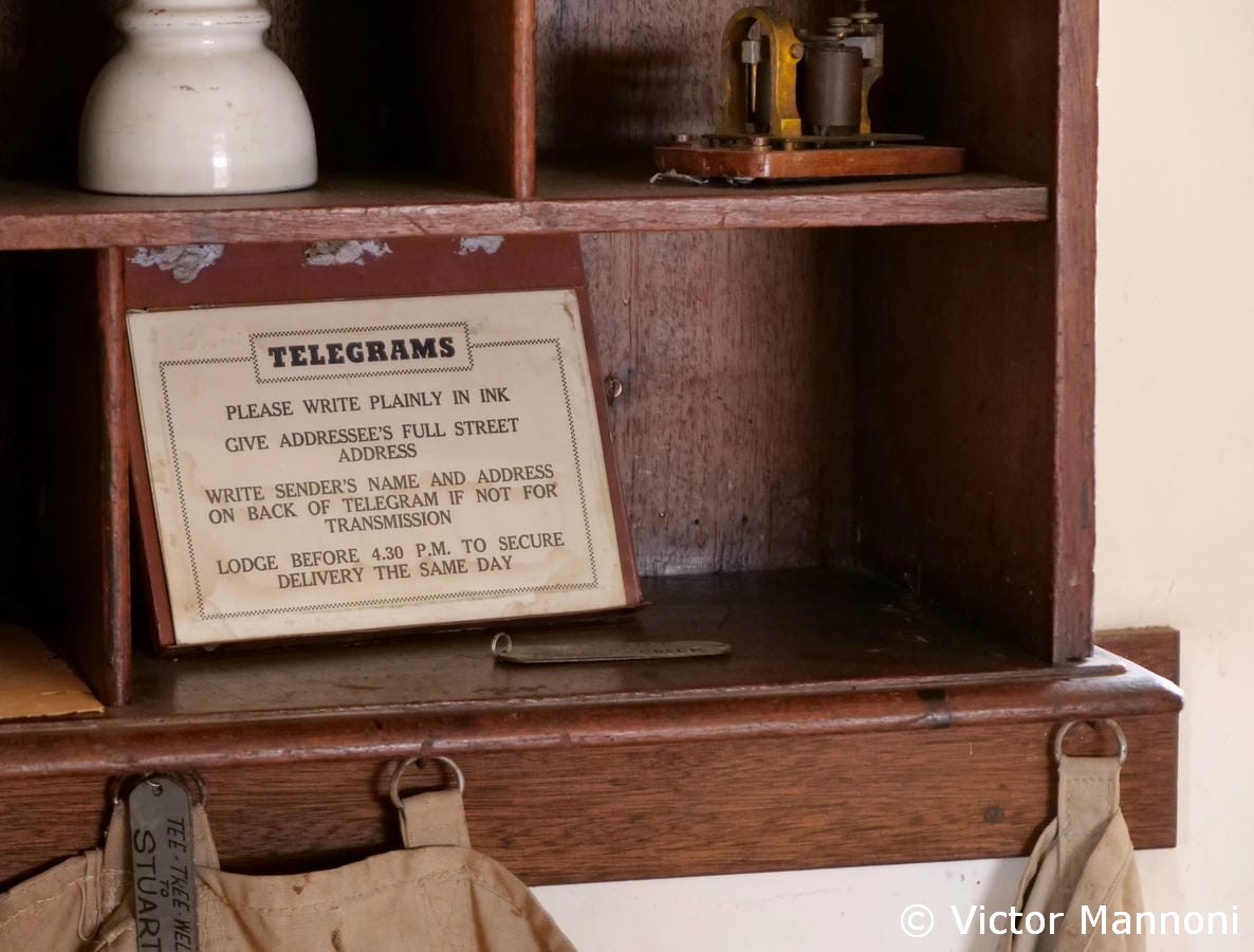 En milieu d’après-midi, je reviens vers le nord de la ville pour visiter la Telegraph Station (F). L’endroit n’a rien de spectaculaire, mais il reste hautement symbolique : c’est ici, autour de cette ancienne station de télégraphe, qu’Alice Springs a vu le jour. L’exposition est modeste, mais elle permet de saisir l’importance historique du lieu dans les débuts des communications en plein désert australien.