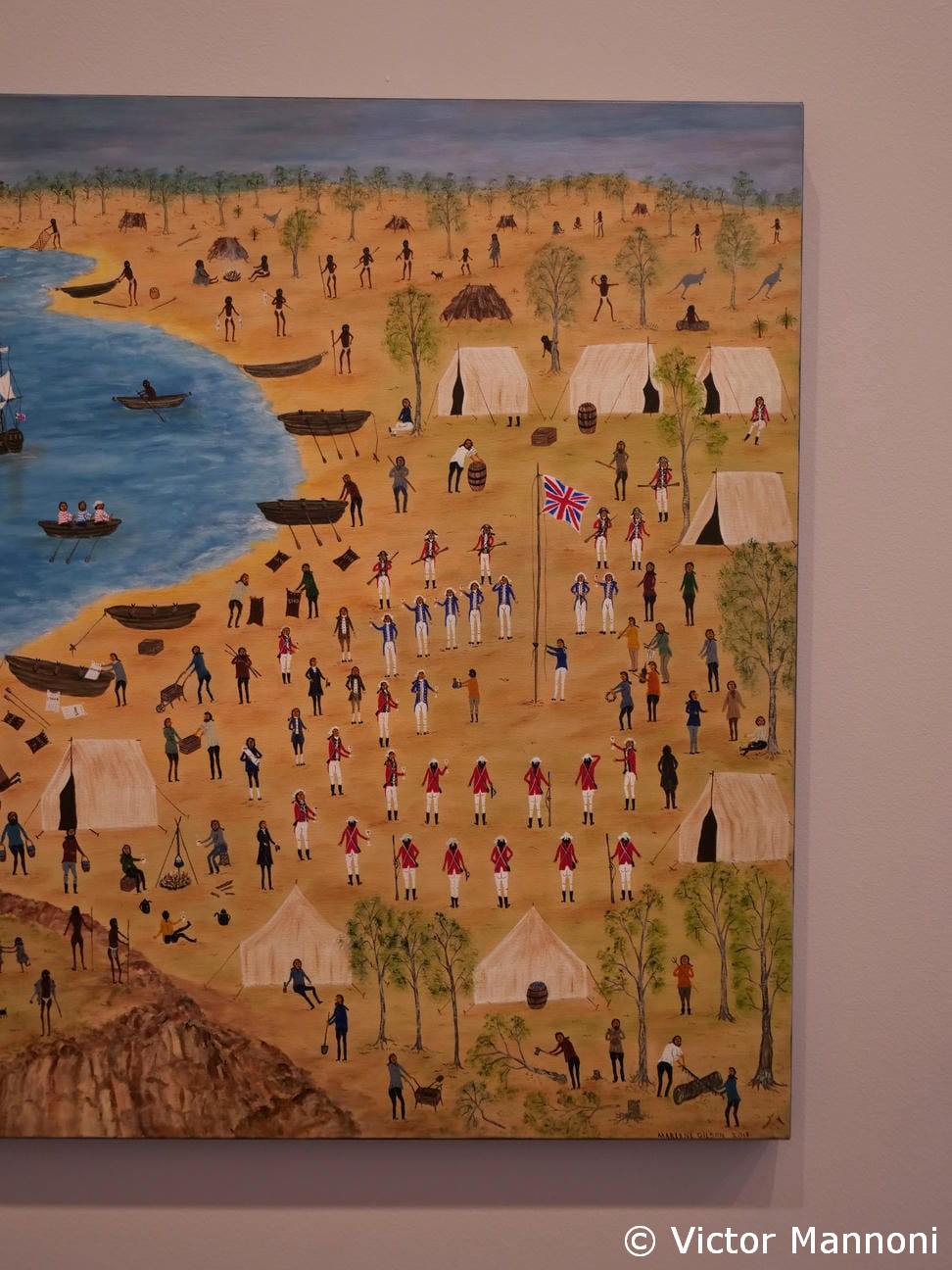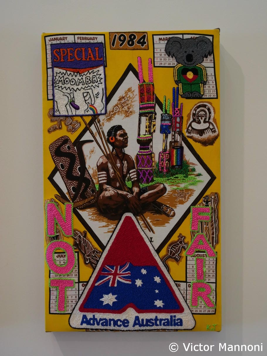 Nous terminons notre parcours culturel à la Ian Potter Centre, annexe de la National Gallery, entièrement consacrée à l’art australien. Les œuvres aborigènes y sont particulièrement fortes, tant par leur style que par leur profondeur.