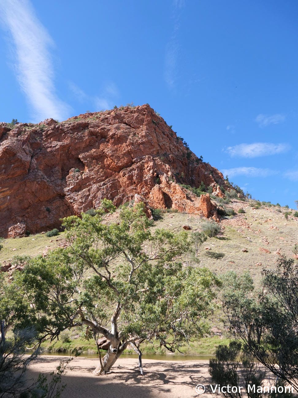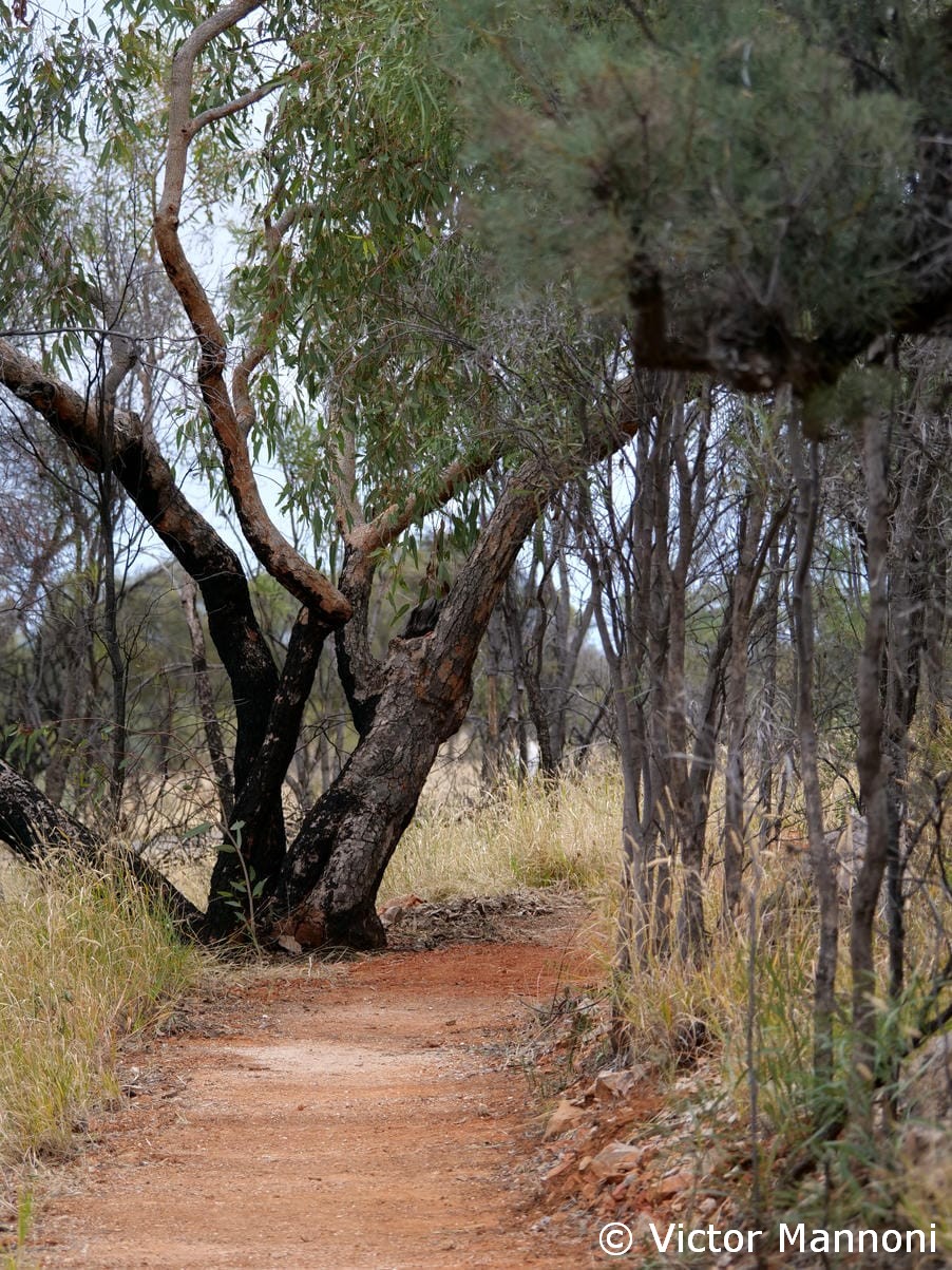 Un agréable sentier relie Emily Gap à Jessie Gap, les deux gorges principales du parc. Le chemin traverse un paysage typique du Centre Rouge, entre collines ocres, eucalyptus et zones rocheuses. Il est possible de faire la marche dans un sens ou de revenir sur ses pas pour profiter pleinement des vues. Pour ma part, je suis parti de Jessie Gap et j’ai fait demi-tour à mi-parcours, faute de temps. Même ainsi, la balade valait largement le détour : le calme, la lumière et la beauté des lieux rendent la promenade particulièrement plaisante. C’est une belle façon de découvrir la région à son rythme, loin des foules.