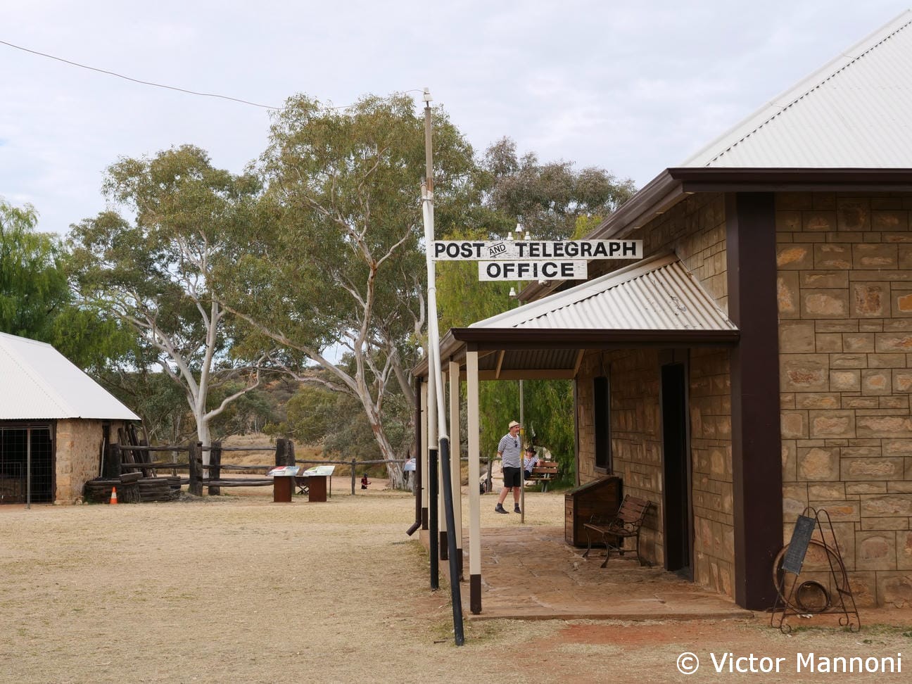 En milieu d’après-midi, je reviens vers le nord de la ville pour visiter la Telegraph Station (F). L’endroit n’a rien de spectaculaire, mais il reste hautement symbolique : c’est ici, autour de cette ancienne station de télégraphe, qu’Alice Springs a vu le jour. L’exposition est modeste, mais elle permet de saisir l’importance historique du lieu dans les débuts des communications en plein désert australien.