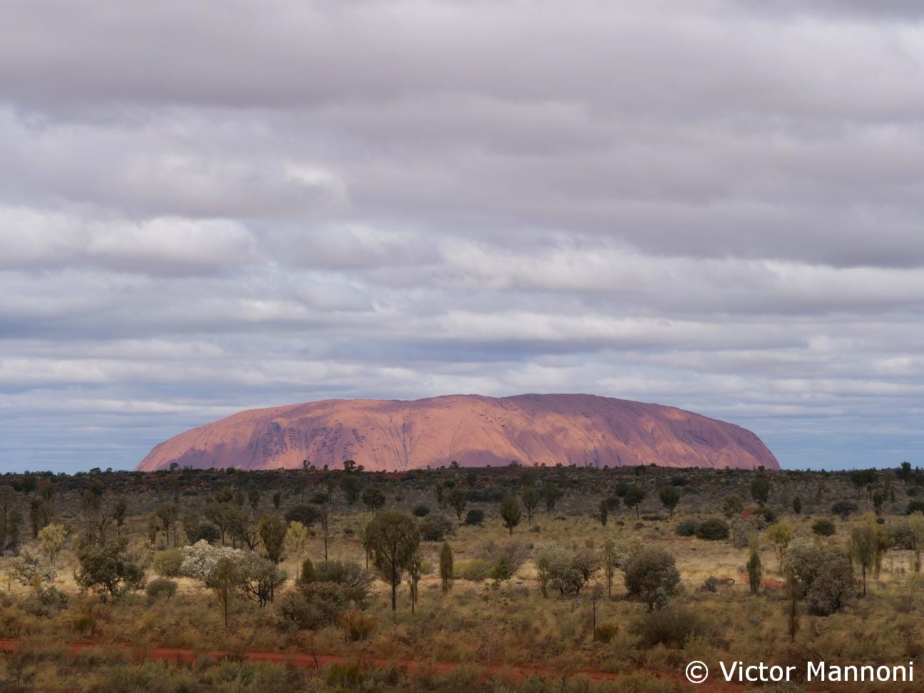 Réveil aux aurores pour pour prendre un car reliant Alice Springs à Uluru. Départ à 6h25, à une dizaine de minutes à pied de mon auberge. J’avais réservé ce trajet en ligne bien à l’avance (sur viator), sans connaître précisément l’heure d’arrivée — simplement que le trajet durerait au minimum 5 heures.